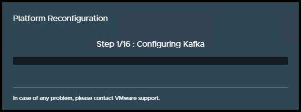 ‘When you click the Reconfigure button you will be informed vRNI could be unavailable for 10 minutes. In my case it was just a couple of minutes. Hitting OK, will start the reconfigure process of 16 steps.