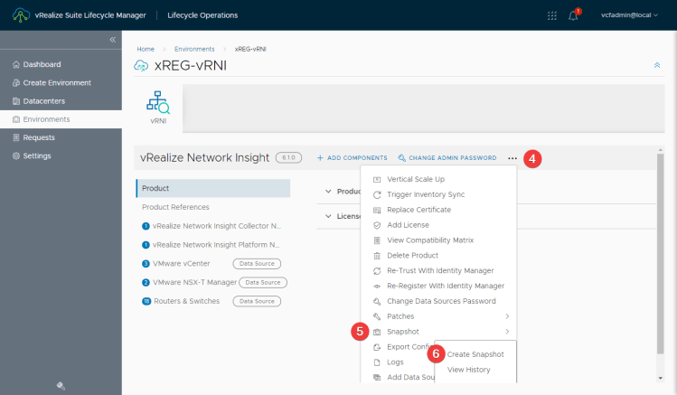 After the snapshot has been taken (you can verify in vCenter), go back into the vRNI Environment (Lifecycle operations > Environments > vRNI Env > view details).